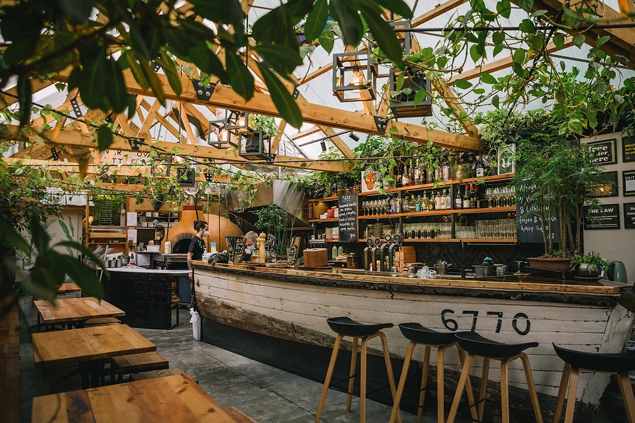 A glasshouse pizzeria with clear ceilings and a repurposed 120-year-old fishing boat turned into the bar, Arbour Pizza is cosy and inviting,
