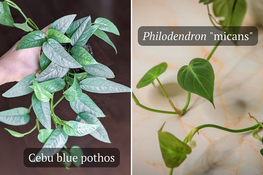 rounder, more heart-shaped leaves that are thin and soft. They almost feel more delicate. Pothos, on the other hand, have leaves that are