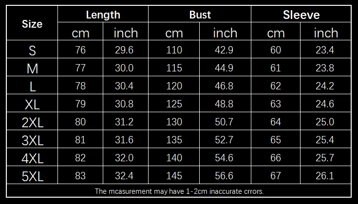 Size: S,M,L,XL,2XL,3XL,4XL,5XL