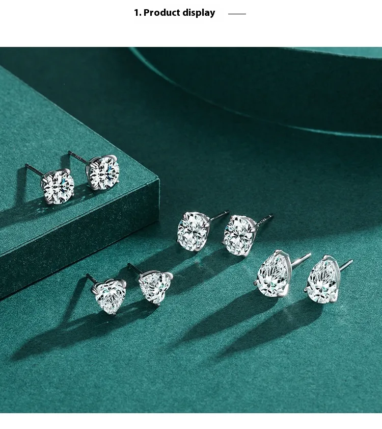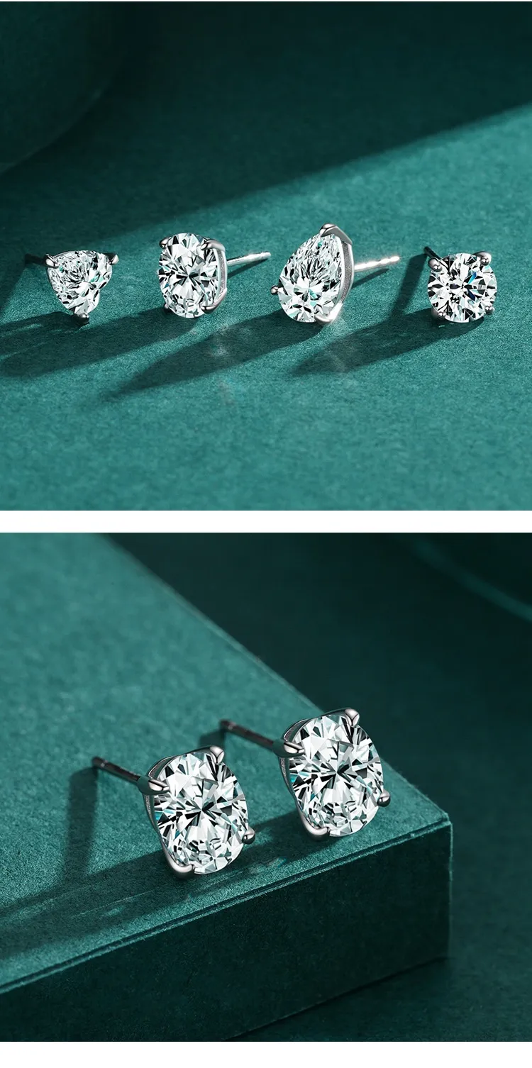 S925 Sterling Silver Oval Artificial Diamond Stud Earrings For Women