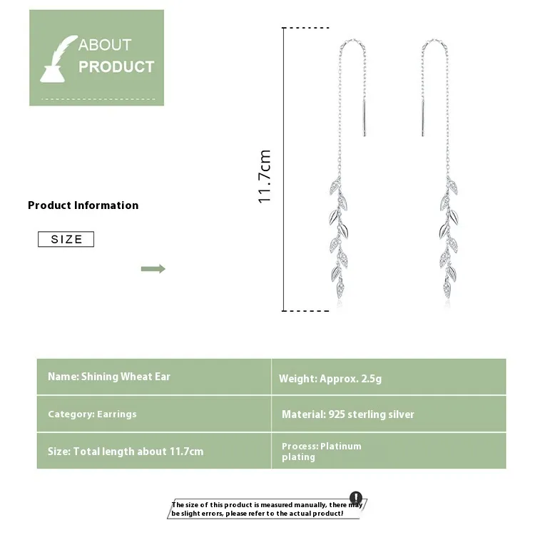 Shiny Wheat Sterling Silver S925 Earrings Fashion Women