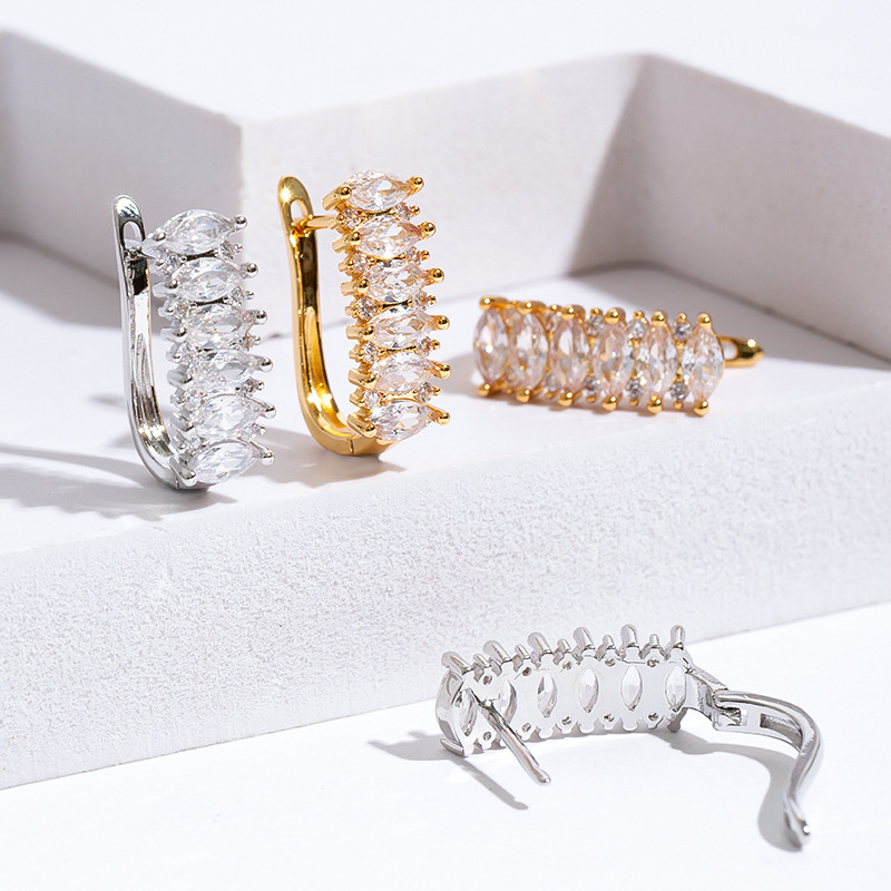 U-shaped Horse Eye Zircon Gang Drill Earrings