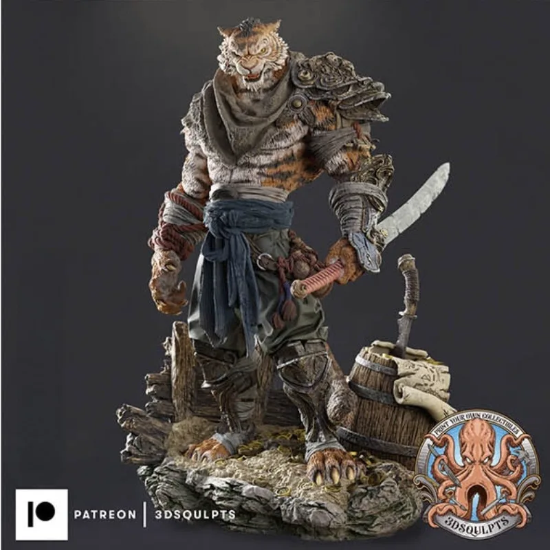 The Tiger Warrior model features highly detailed sculpting, capturing every aspect of the warrior’s