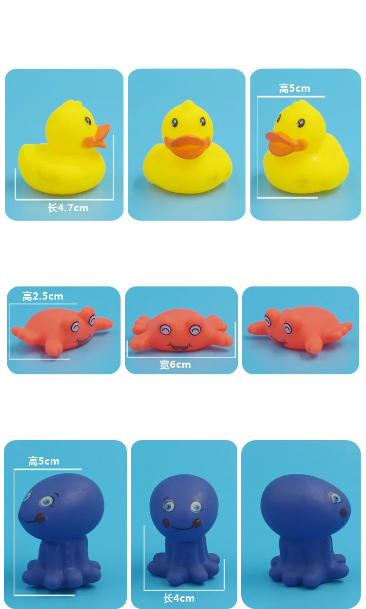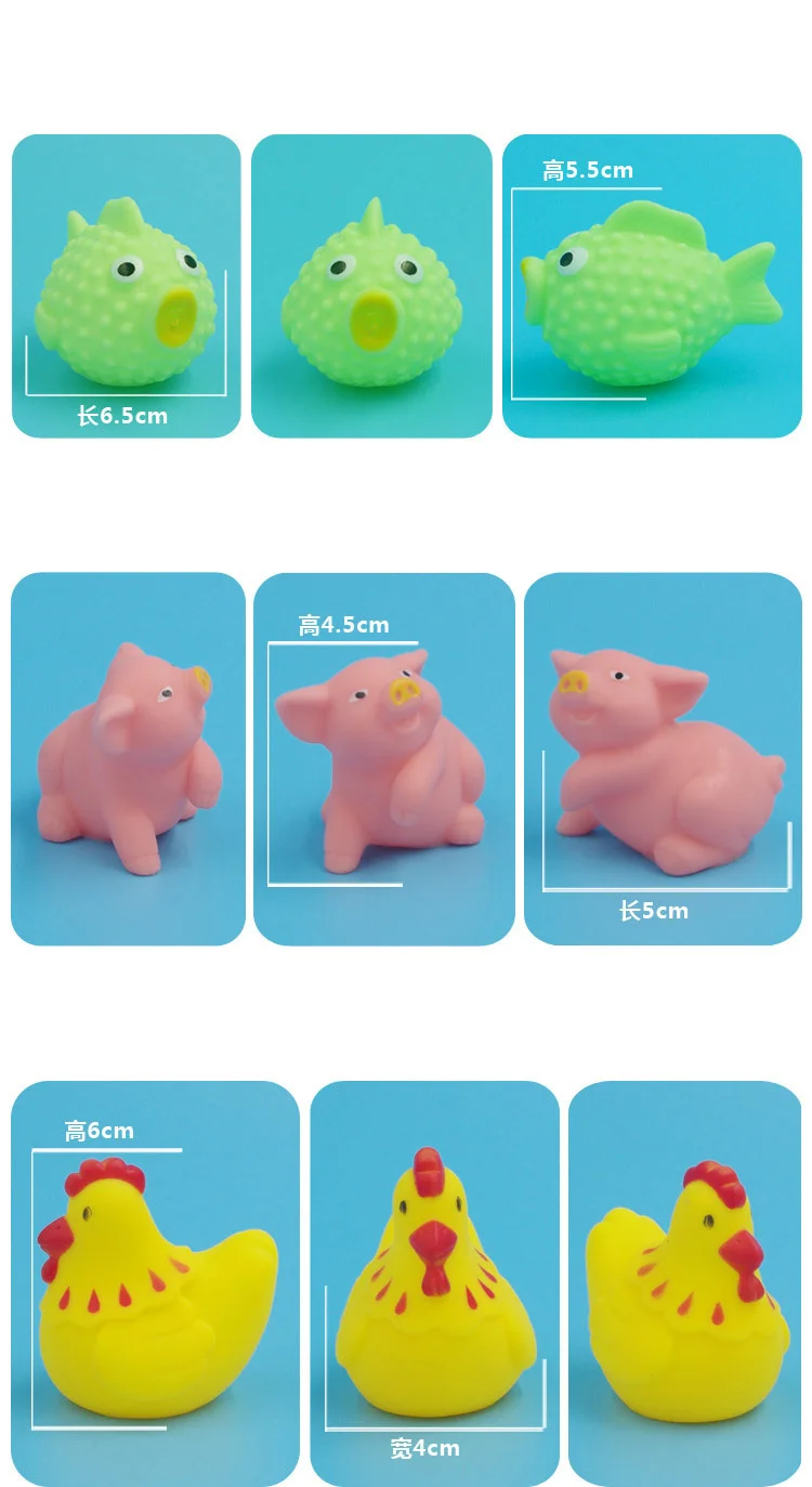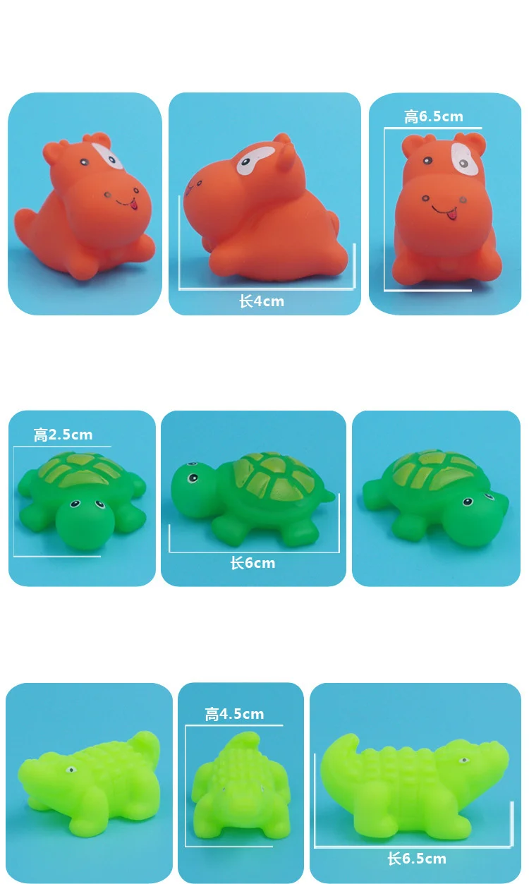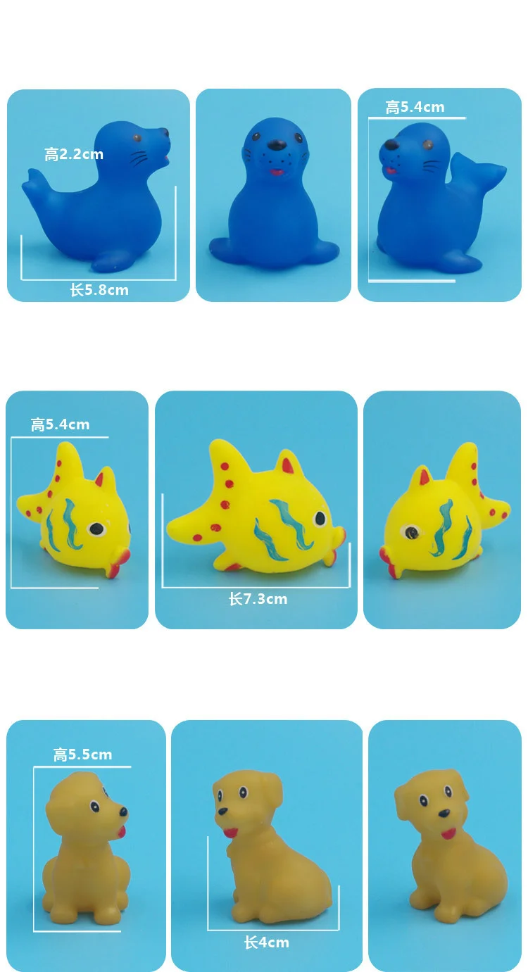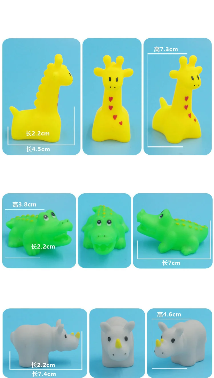 - Product Name: 10Pcs/Set Cute Animals Swimming Water Toys For Children Soft Rubber Float Squeeze Sound Squeaky Bathing Toy For Baby Bath Toys