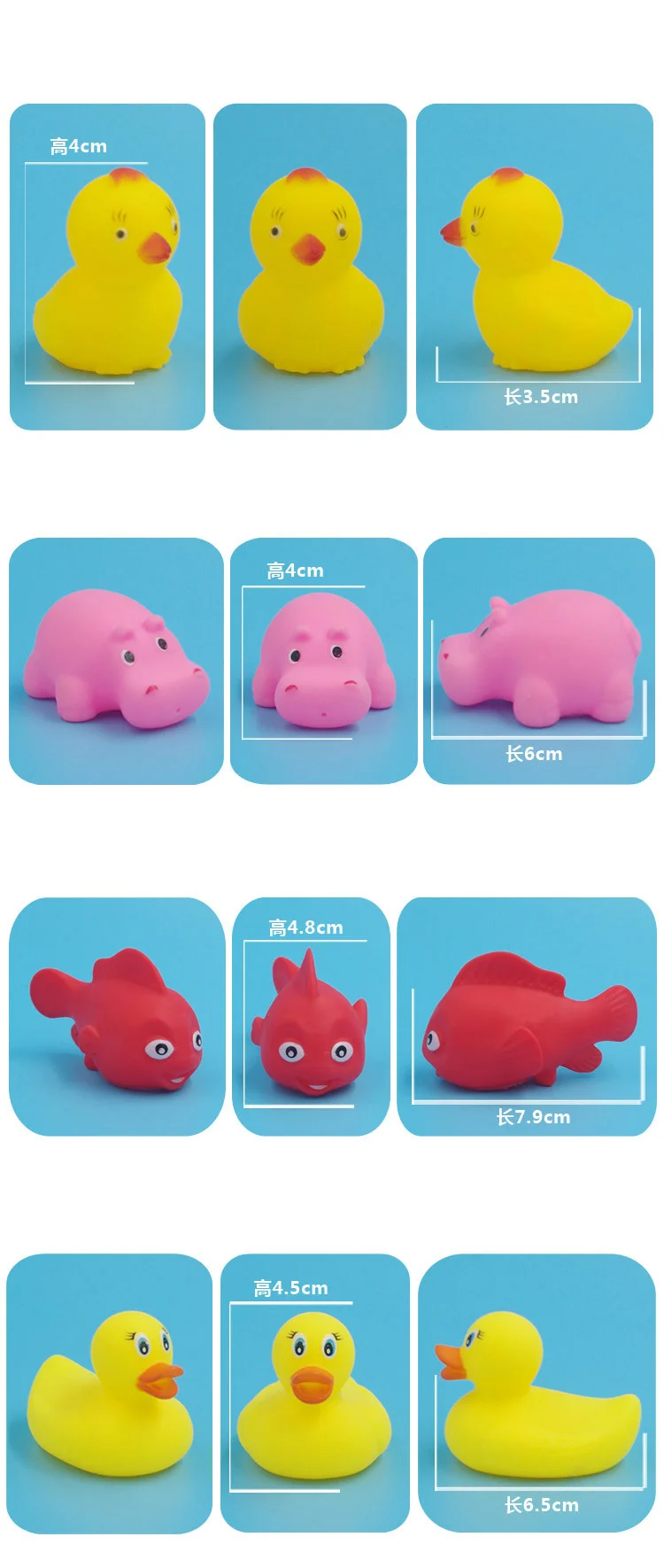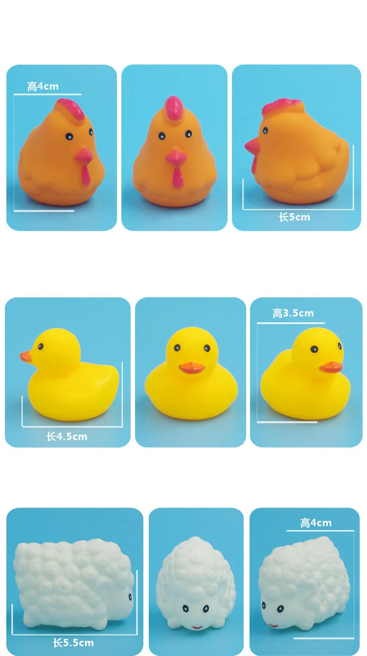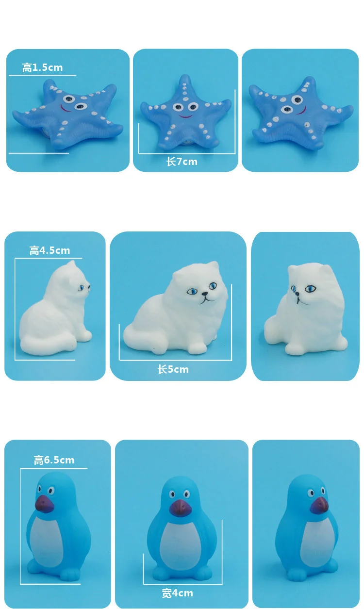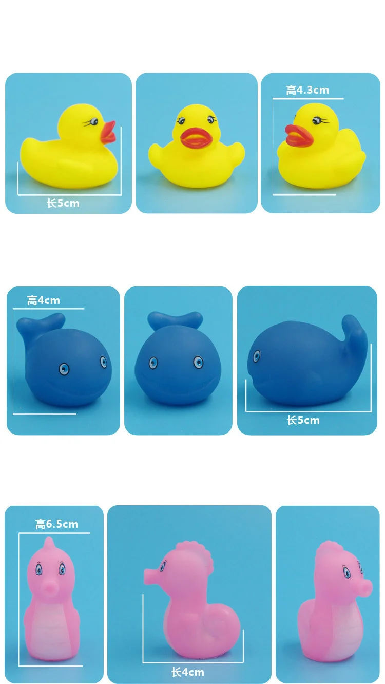 - Product Name: 10Pcs/Set Cute Animals Swimming Water Toys For Children Soft Rubber Float Squeeze Sound Squeaky Bathing Toy For Baby Bath Toys