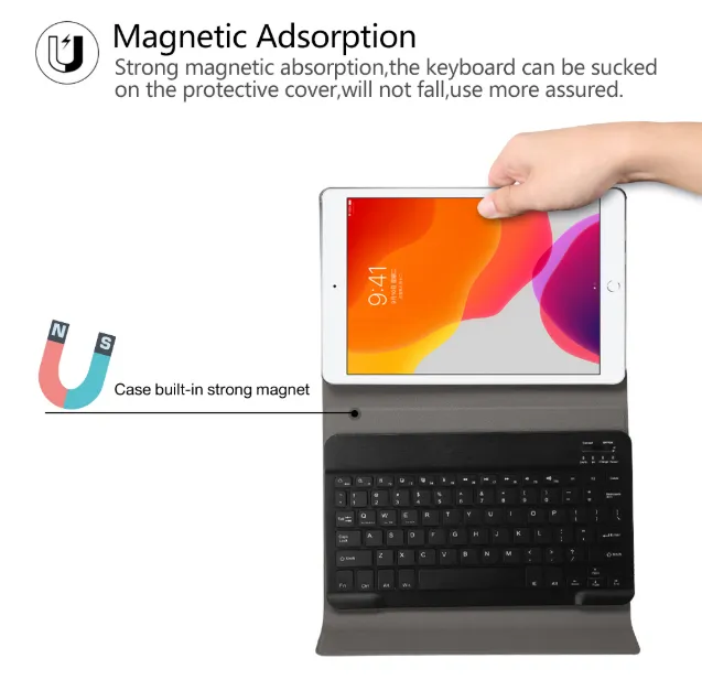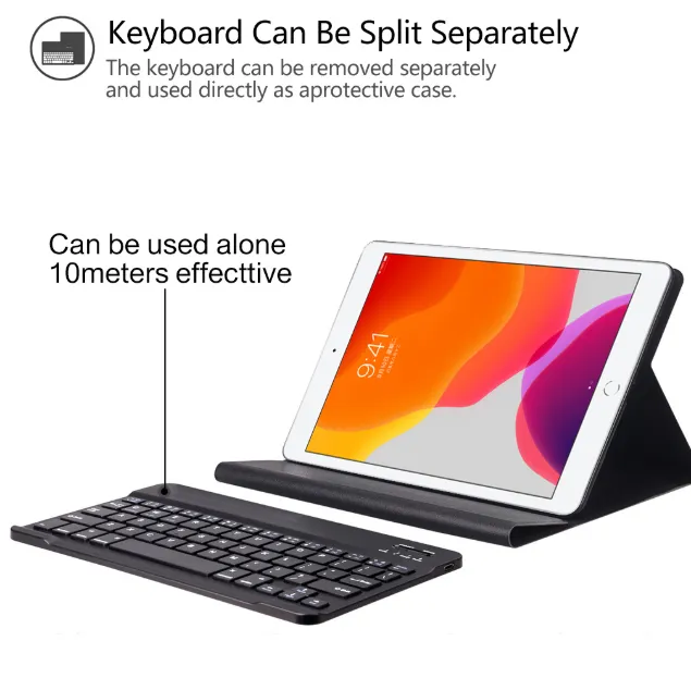 Features : Rechargeable bluetooth keyboard Removable bluetooth keyboard Suitable models : for All-new ipad 10.2 inch tablet (7th Generation Model: A2200 A2198 A2232)