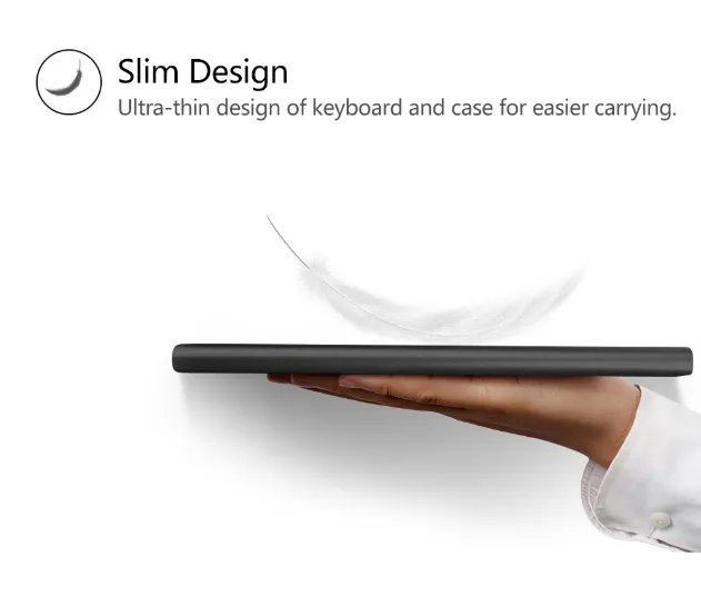 The rechargeable feature means you won’t need to worry about constantly replacing batteries. Simply charge the keyboard via the included USB cable, and it will last for hours of uninterrupted use. Additionally, the smart case offers durable protection for your tablet, safeguarding it from scratches, drops, and dust while keeping it lightweight and slim for easy portability.