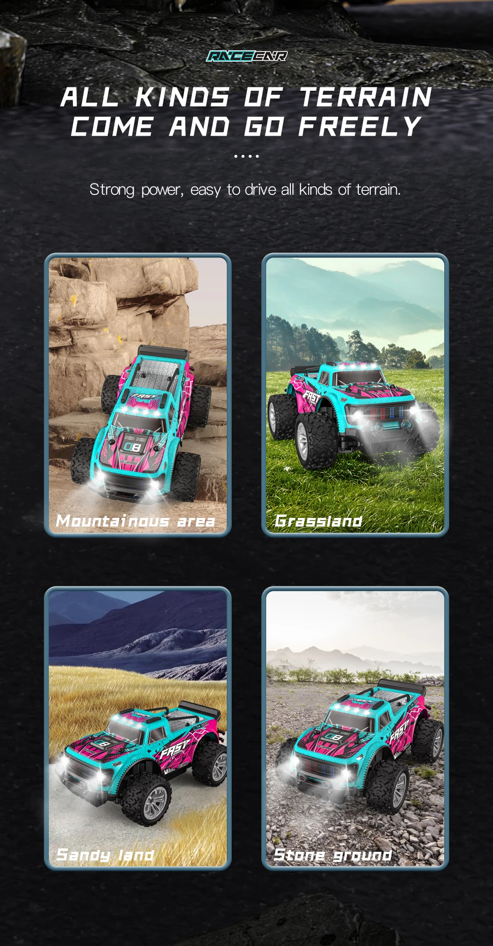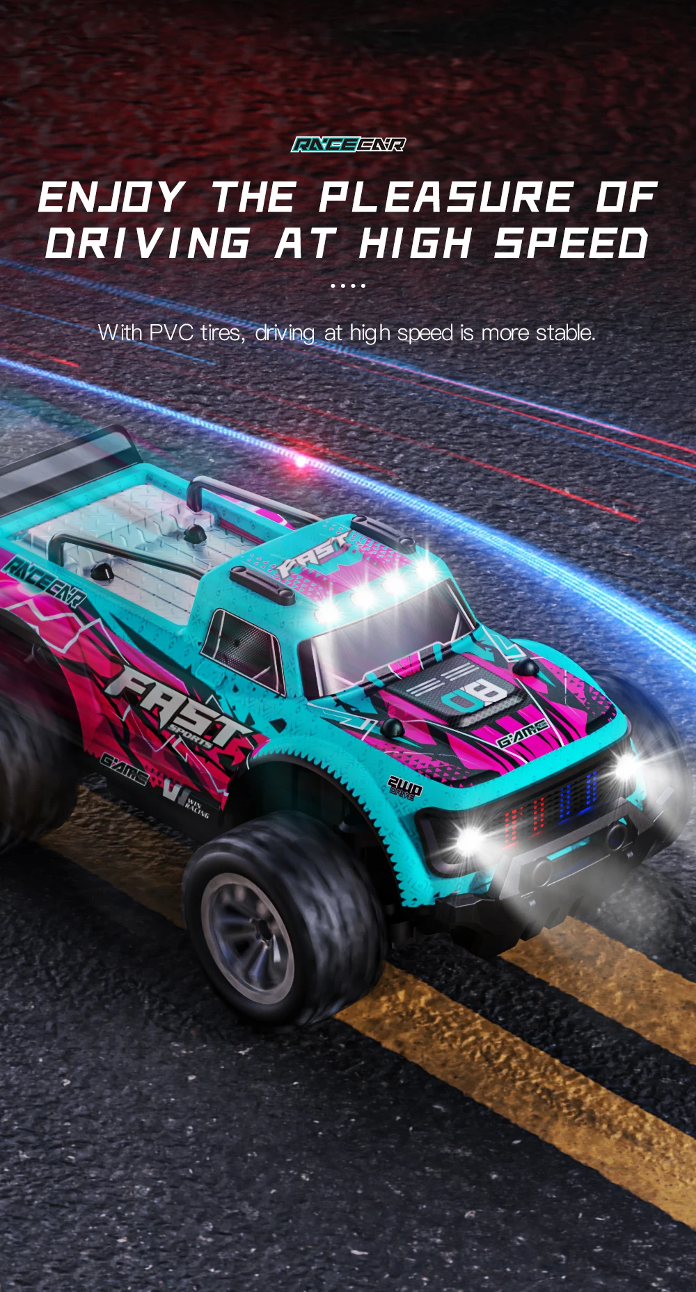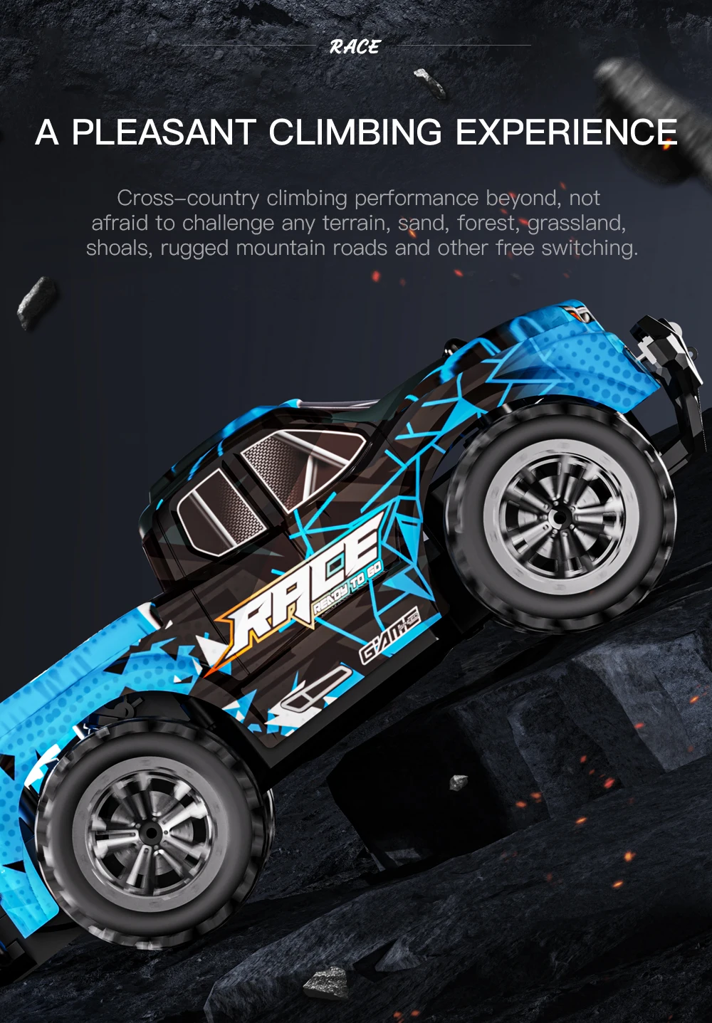 This 1:16 scale RC car features 2WD and LED lights, achieving speeds up to 20KM/H. Designed for high-speed off-road climbing, it operates on a 2.4G frequency for precise control. Perfect for boys, girls, and kids, this remote control car offers thrilling outdoor fun.