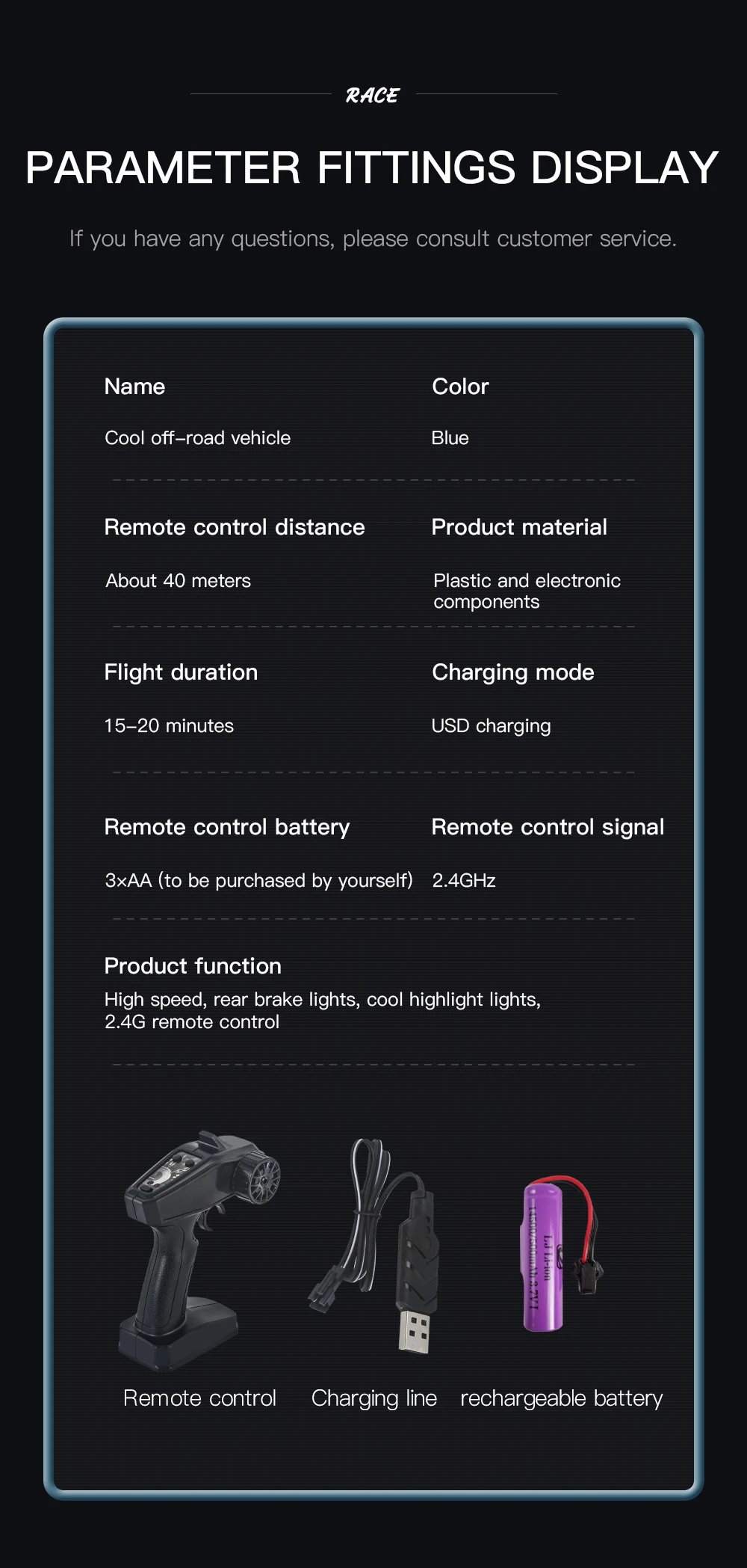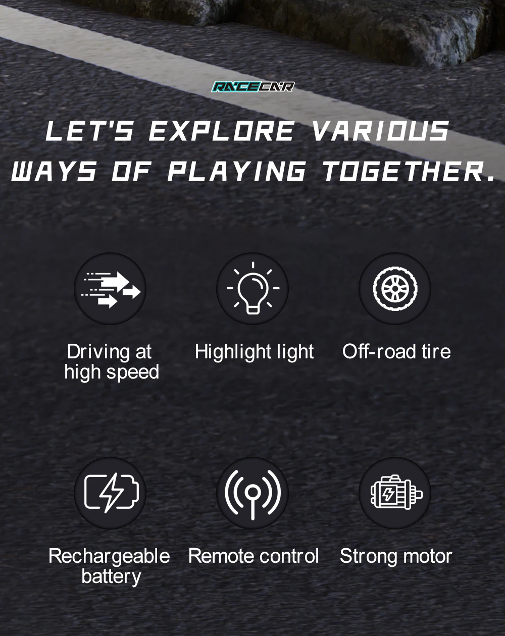 1. Adopting simulation structure design, with the sense of handling of a real car, realising full-size scale model, high-speed driving, accelerating, decelerating, braking, reversing, turning left and turning right.