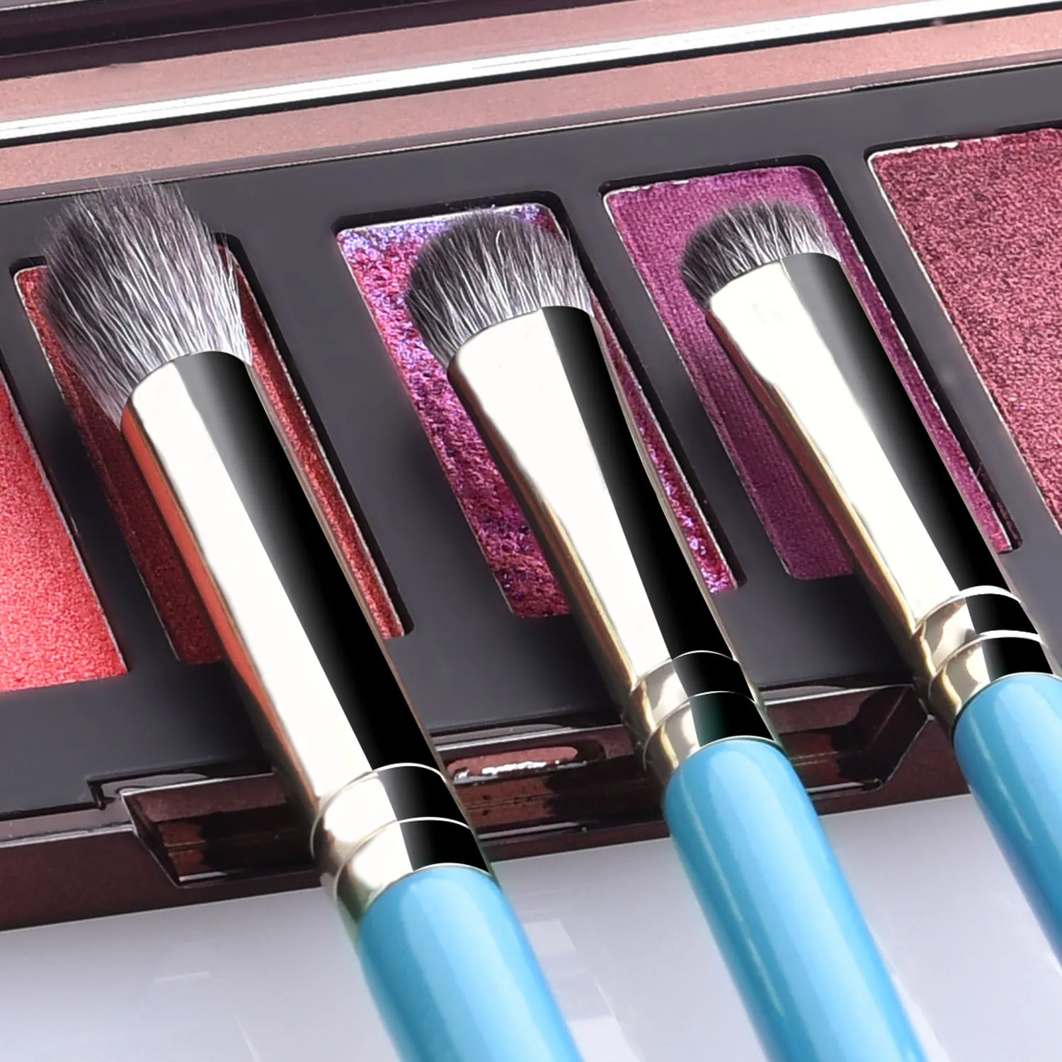 - Eye Brushes: Eyeshadow brushes (flat, blending, and crease), eyeliner brush, and eyebrow brush.