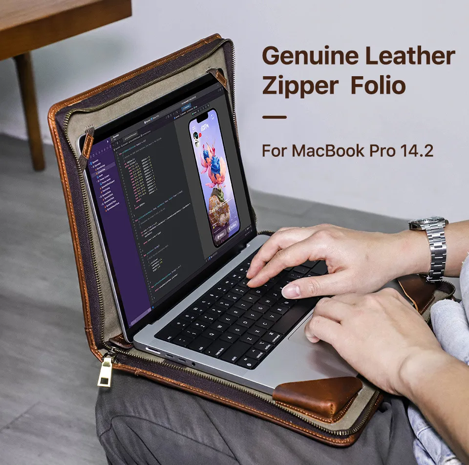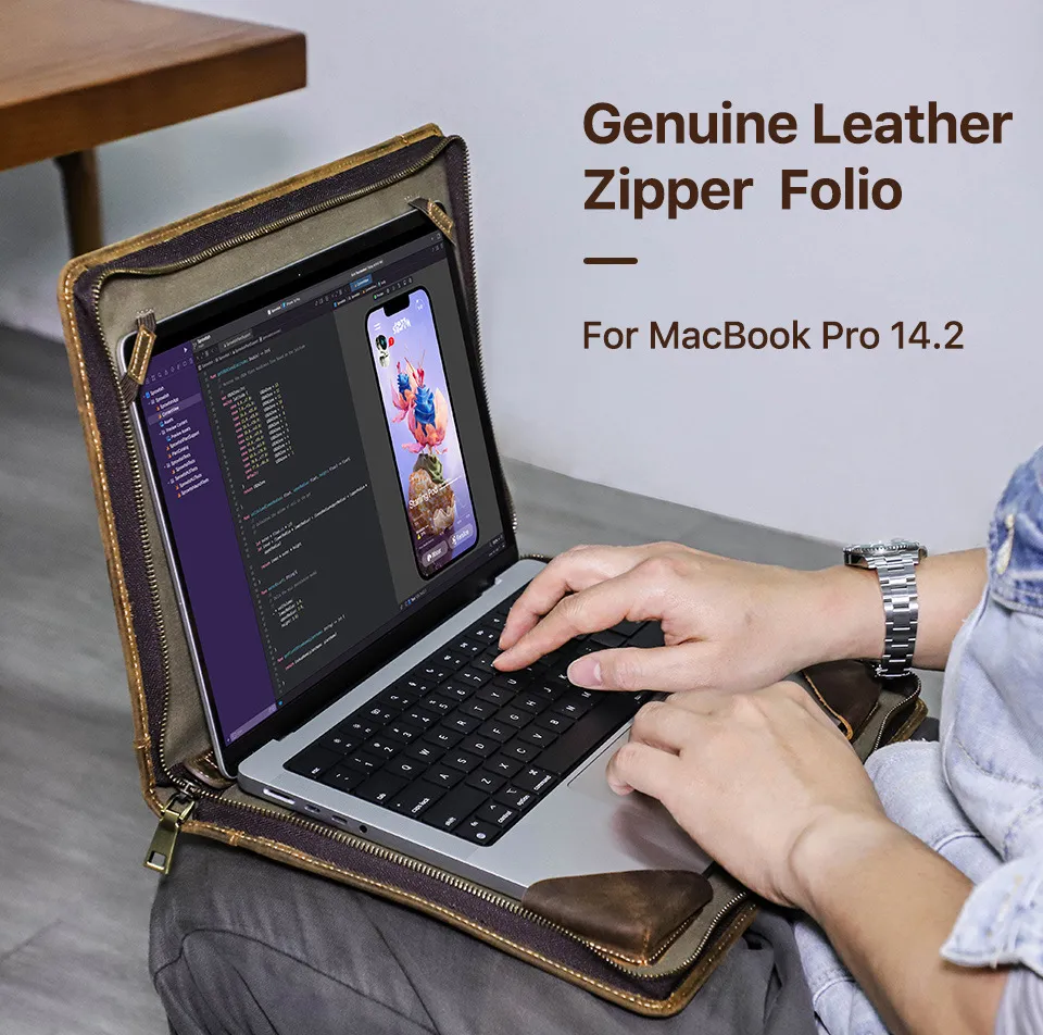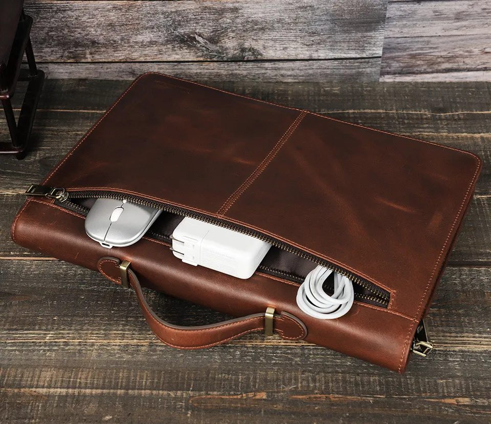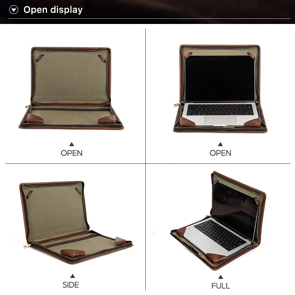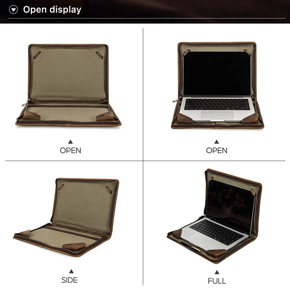 14.2-inch Genuine Leather Protective Case Laptop Handbag