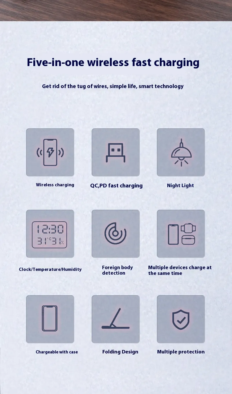 5. Practical Function: This wireless charging dock not only charges your devices, but also displays the time, humidity, and temperature in