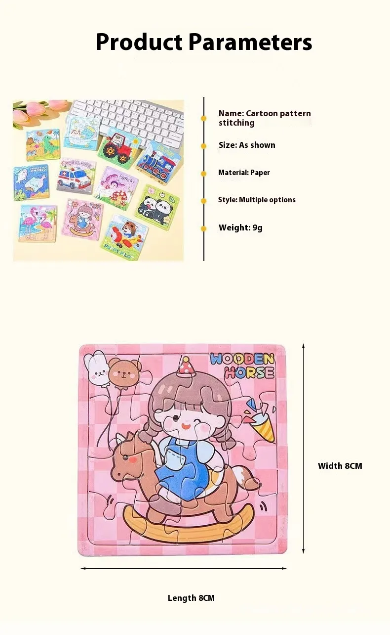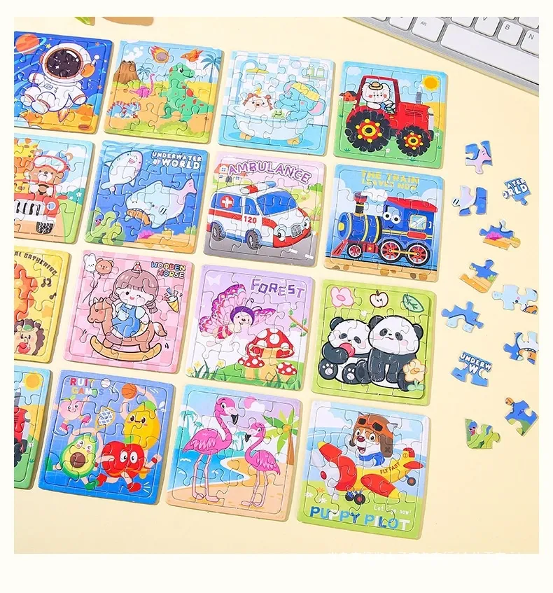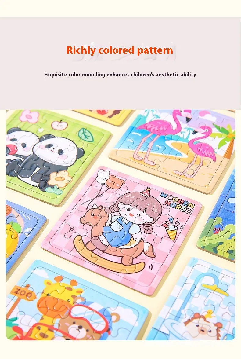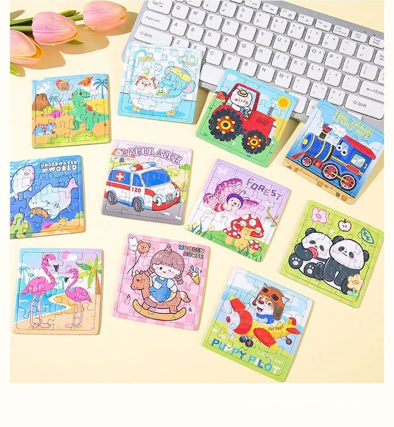 The 16-Piece Children's Puzzle Toys Cartoon Mini Jigsaw is made from safe, non-toxic materials, ensuring that the puzzle is not only fun but also safe for children to play with. The pieces are smooth and durable, designed to withstand repeated handling by young children.