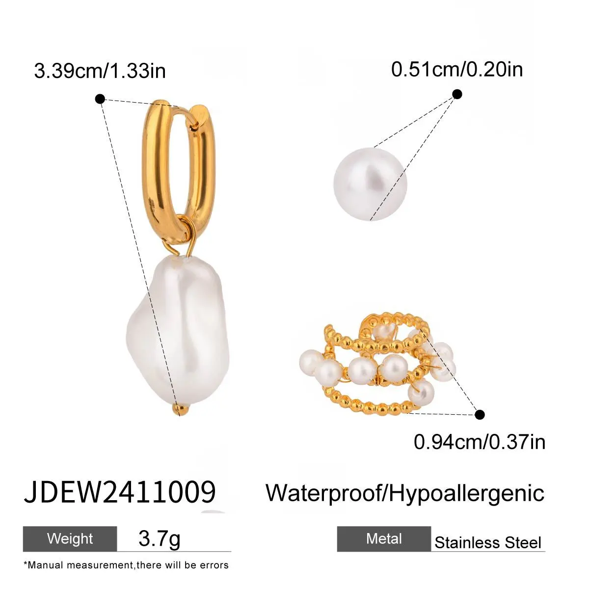 18K Gold Stainless Steel Pearl Round Beads Shell Pearls Ear Clip Earrings