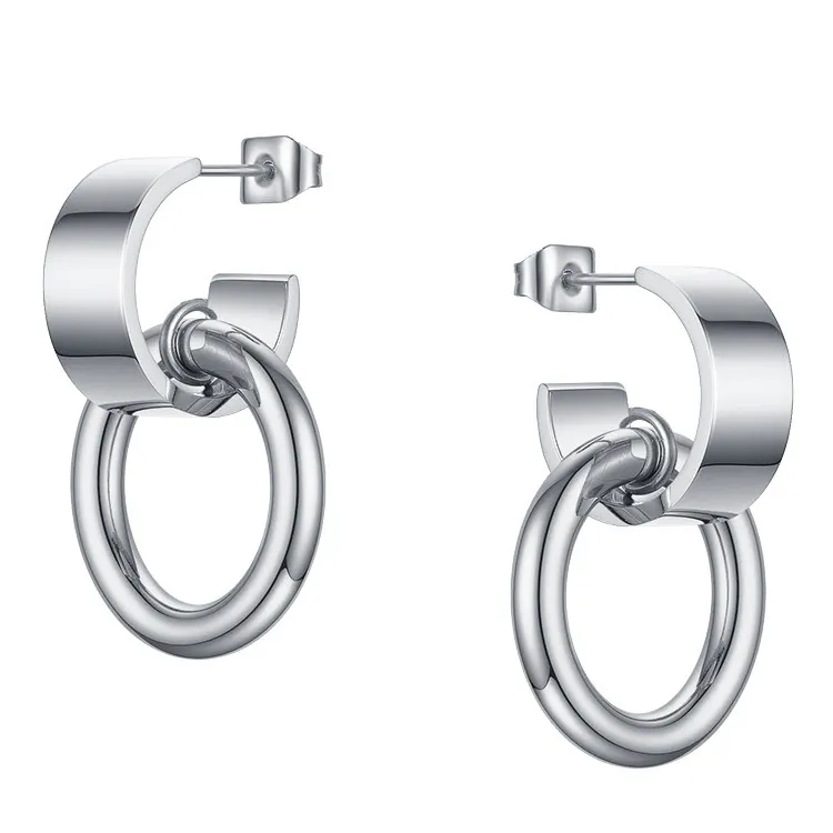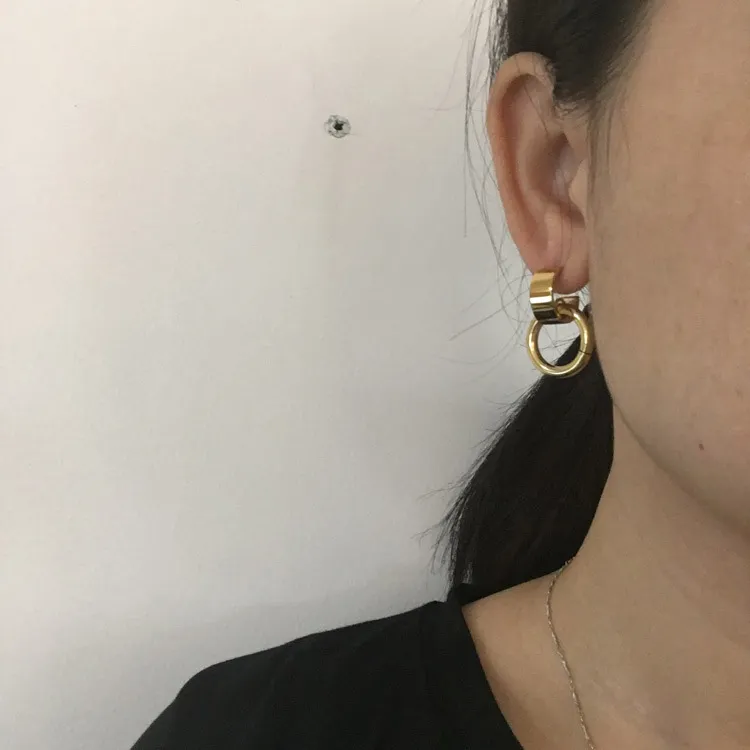 18K Gold Titanium Steel European And American Glossy C- Shaped Hanging Small Circle Ear Studs