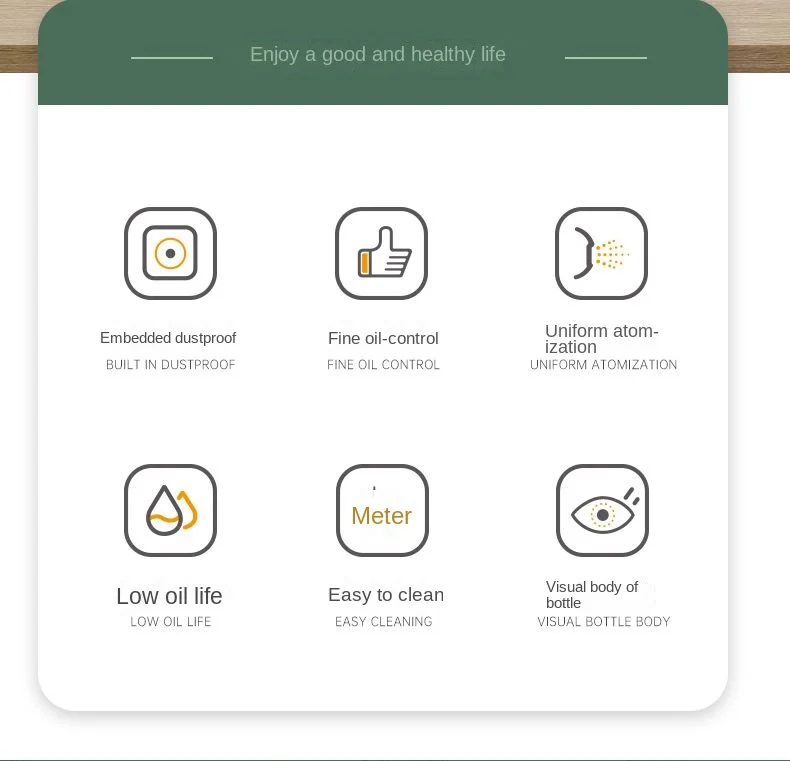 The clear bottle lets you see the remaining oil level at a glance, ensuring you know when it’s time for a refill. This feature adds