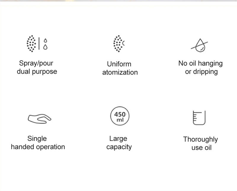 food-grade materials, the olive oil sprayer dispenser is both durable and safe to use. The transparent body lets you see the amount of oil