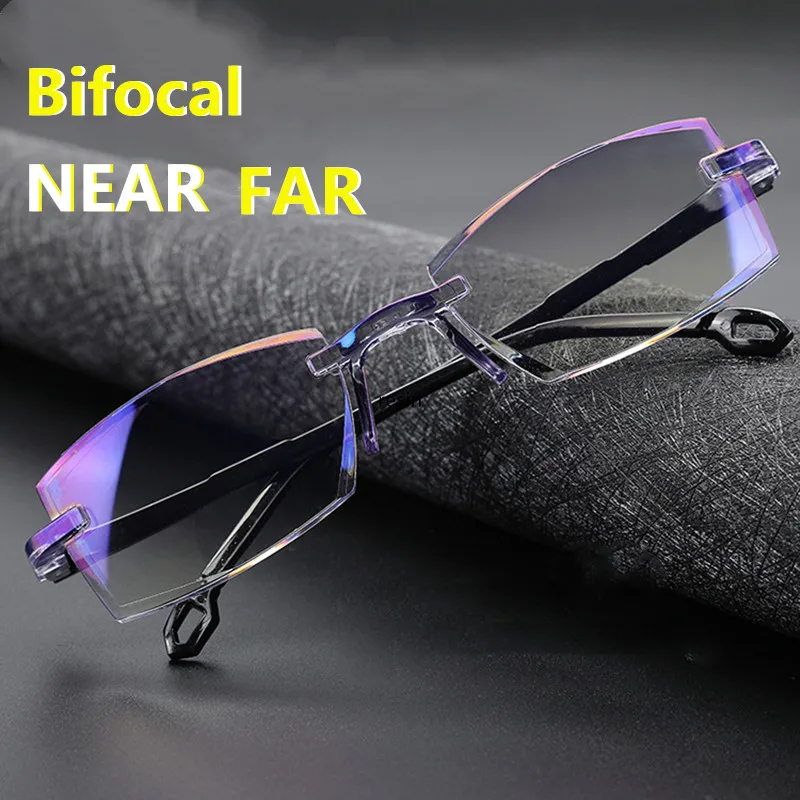 These Rimless Anti-Blue Light Bifocal Reading Glasses are ideal for various activities, from reading and computer work to casual outings. Their stylish and comfortable design makes them a versatile accessory for daily wear, helping you maintain clear vision while protecting your eyes from digital strain.