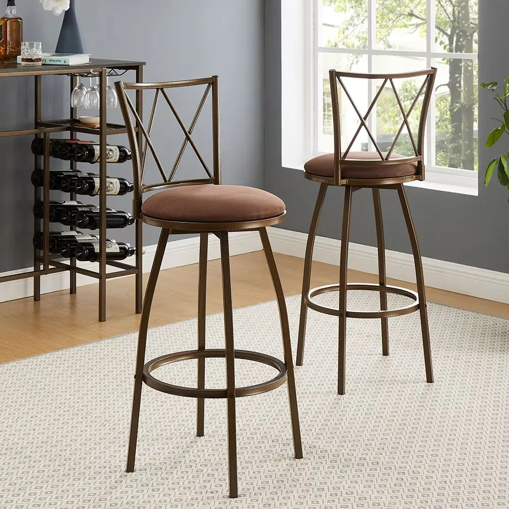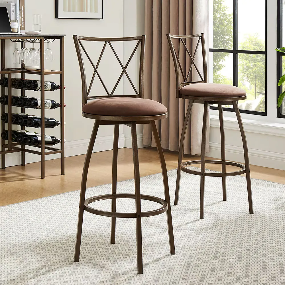 2 Piece Bar Stools, Bar Chairs, Brown Bar Stools,Country Style Industrial,Easy To Assemble, With Footrest For Indoor Bar Dining Kitchen