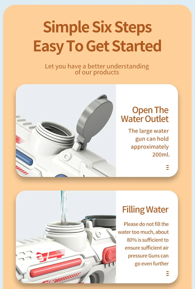 This 2023 electric automatic water gun is designed for high-pressure water play, making it perfect for outdoor, beach, and swimming pool fun. With a large-capacity reservoir, it ensures extended playtime for children, providing a thrilling summer toy experience for boys.