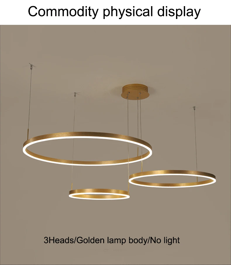 This 2023 modern LED chandelier features brushed rings and a ceiling-mounted design, offering a stylish lighting solution for any home. Available in gold and coffee color options, it adds a touch of elegance to living rooms, dining rooms, and bedrooms.