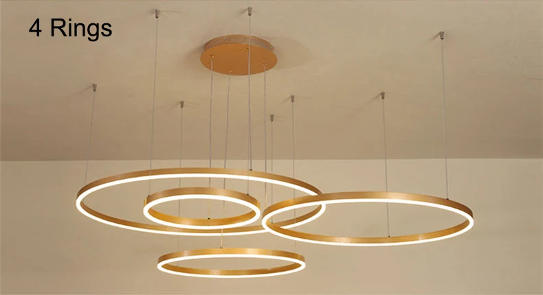 2023 Modern LED Chandelier - Brushed Rings Ceiling Mounted Lamp (Gold & Coffee)