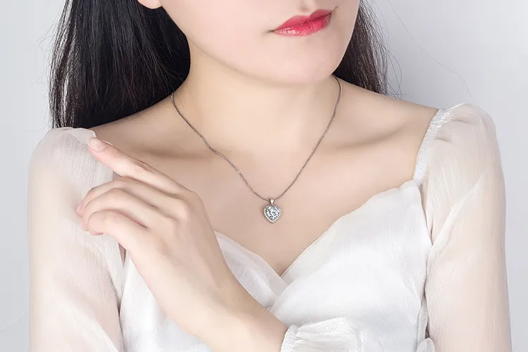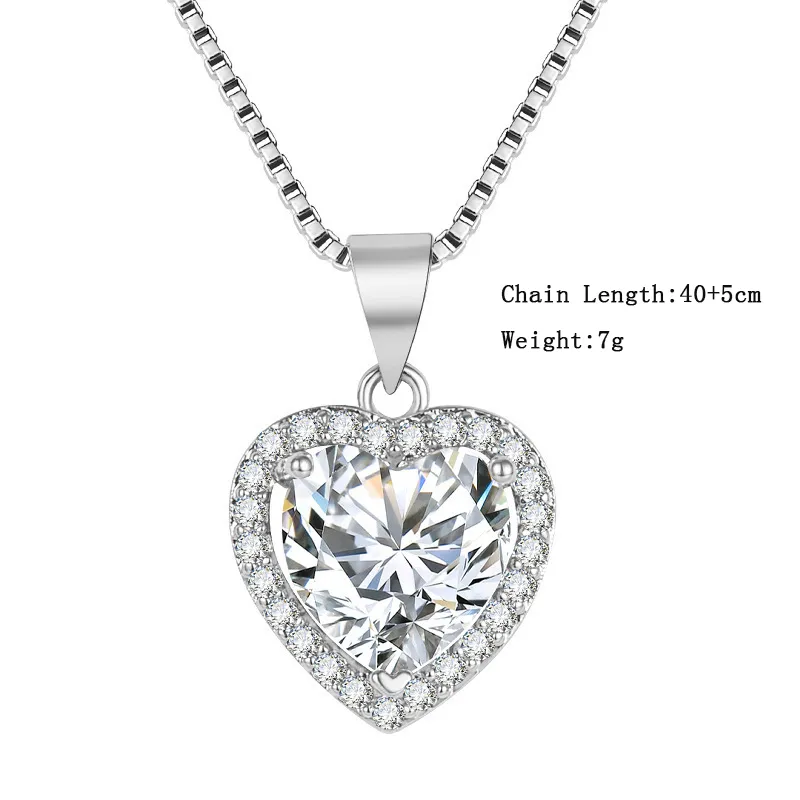 2023 New White Diamond Imitation Moissanite Heart Pendant Necklace Fashion Collarbone Necklace For Girlfriend Jewellery Gift