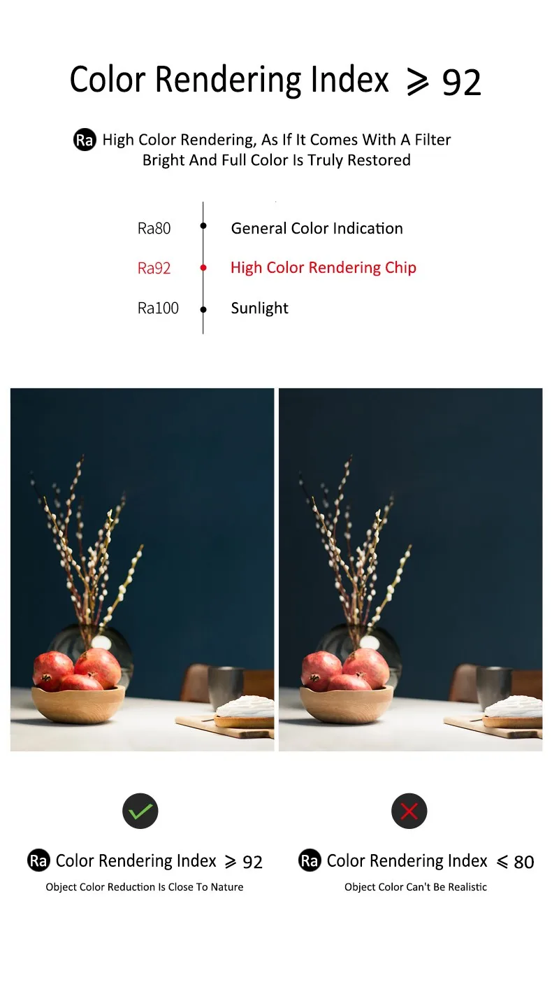 Color Temperature: Warm light(2700K-3500K),Neutral light(4000K-4500K),Cool light(6000K-6500K),Trichromatic light