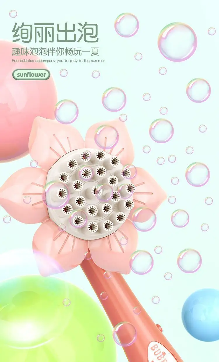 Make summer playtime magical with the 23-Hole Sunflower Bubble Gun. This electric bubble machine is designed to delight children with its charming sunflower design and impressive bubble-blowing capabilities. Ideal for outdoor parties, playdates, and as a special birthday gift, this bubble gun provides endless fun and entertainment.