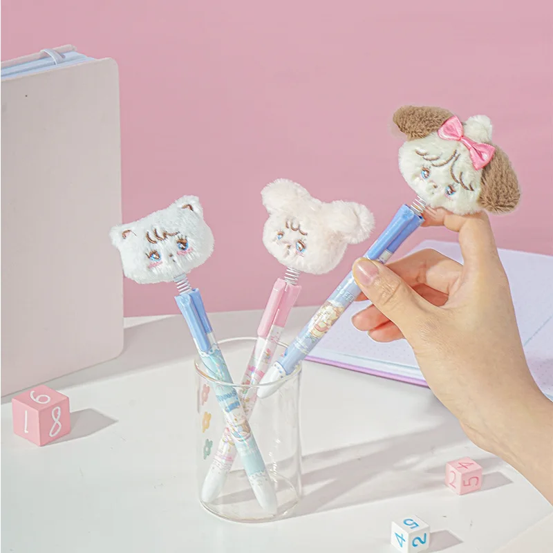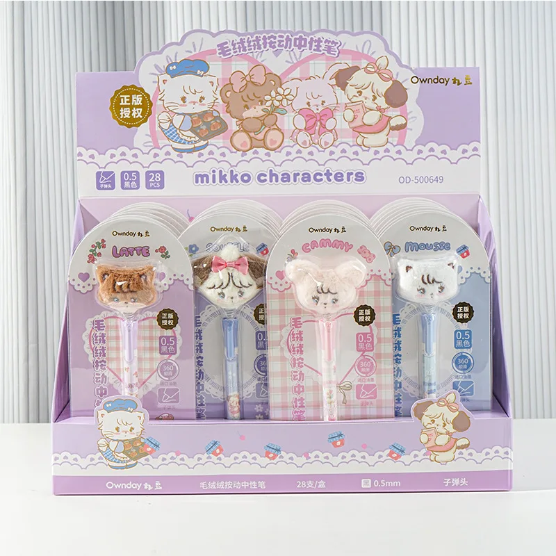 - Design: Each pen in this set is adorned with a charming Mikko plush doll character. The pens are designed to be both visually appealing and functional, with Mikko’s signature look featured prominently on each pen.