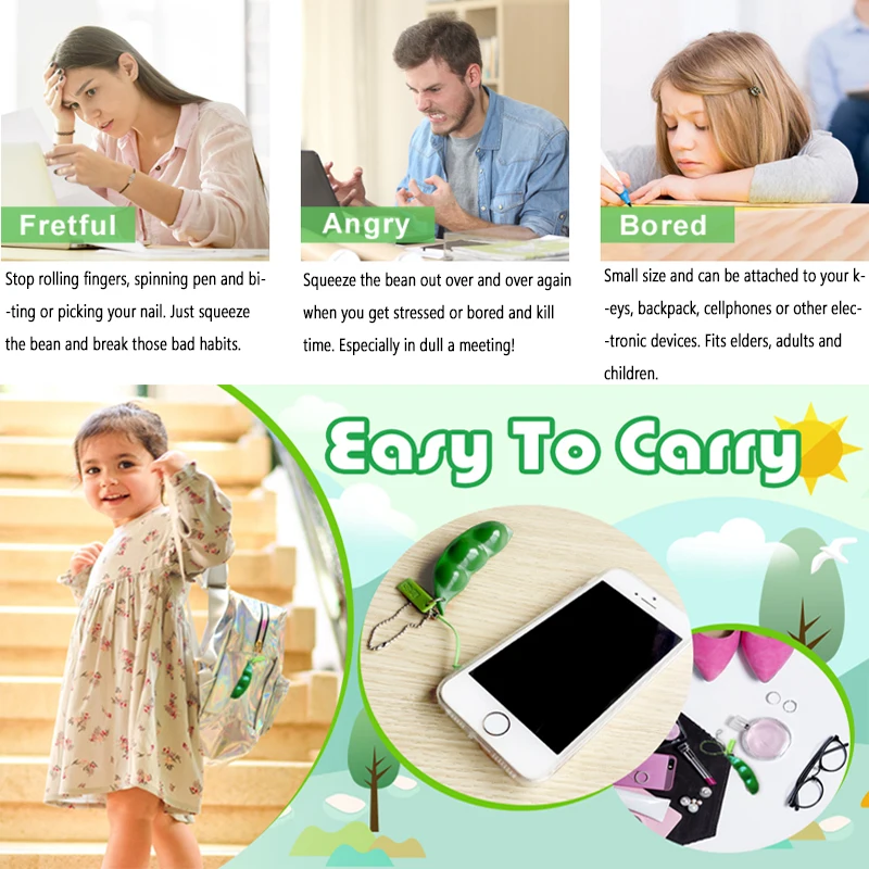 - Designed to mimic the edamame pea pods, the Peapod Fidget Toy offers a cute and unique appearance that appeals to both children and adults.