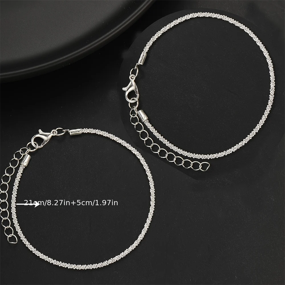 Embrace summer style with the 2PCS Sparkling Silver Anklet Set, a beautiful pair of ankle bracelets designed to add a touch of elegance and