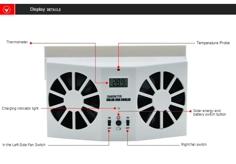 6. Under normal circumstances, no matter which gear the middle button is in, as long as the solar panel has electricity, the fan will be
