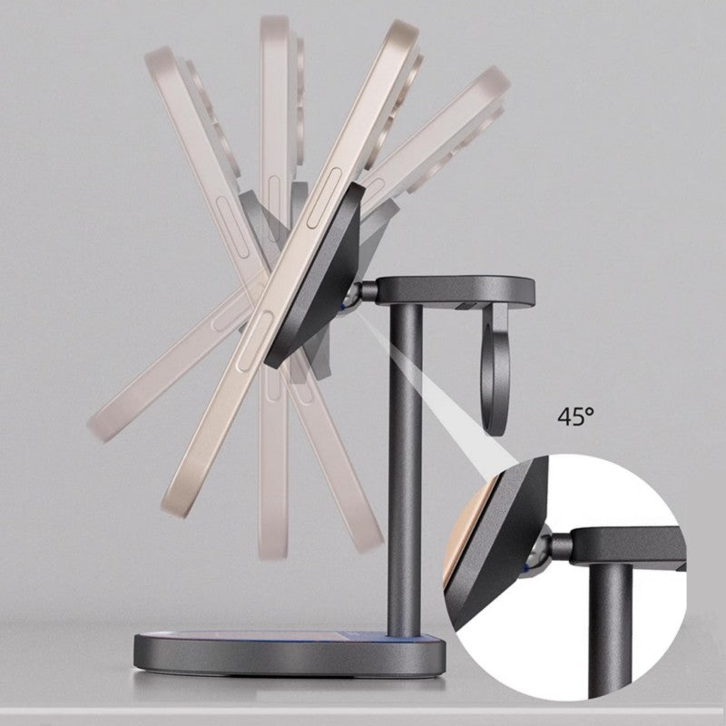 This wireless charger uses magnetic technology to ensure your devices stay securely in place during charging. The strong magnets align your devices perfectly with the charging pads, preventing any interruptions in the charging process. Whether you are charging your smartphone or your wireless earbuds, the magnetic design ensures that the devices are aligned for optimal charging efficiency.