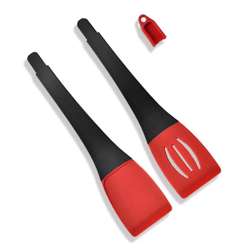 The detachable scraper clip includes one slotted shovel and one rotary blade, which is divided into two parts and is a true 3-in-1. One set of products has three functions. A detachable scraper is used for cooking. The ergonomic handle, comfortable grip, and curved design make cooking and flipping food easier.