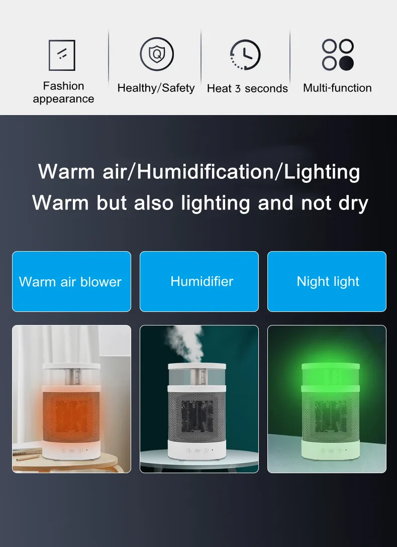 3 In 1 Space Heater Winter Fast Heating Electric Warmer Heating Fans Colorful Night Lights Small Heaters 400ML Air Humidifier