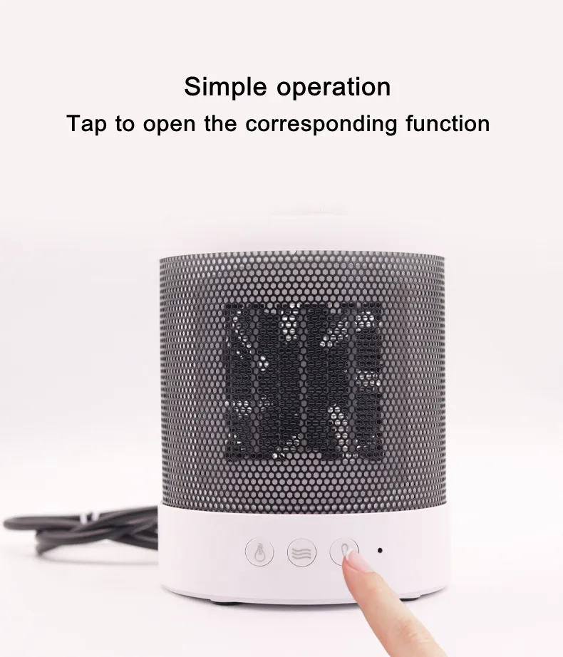 1. This space heater is a small one for indoor use that integrates humidification and heating. Heating will dry the skin, but with the humidification function at the same time, this problem can be well solved; the humidifier has 2 wind speed adjustments, and the heating temperature has 2 adjustments, you can choose according to your own needs; when the temperature reaches 45℃ the space heater will automatically turn off to avoid skin burns; the white appearance, if you are a beauty control, you will like this space heater.