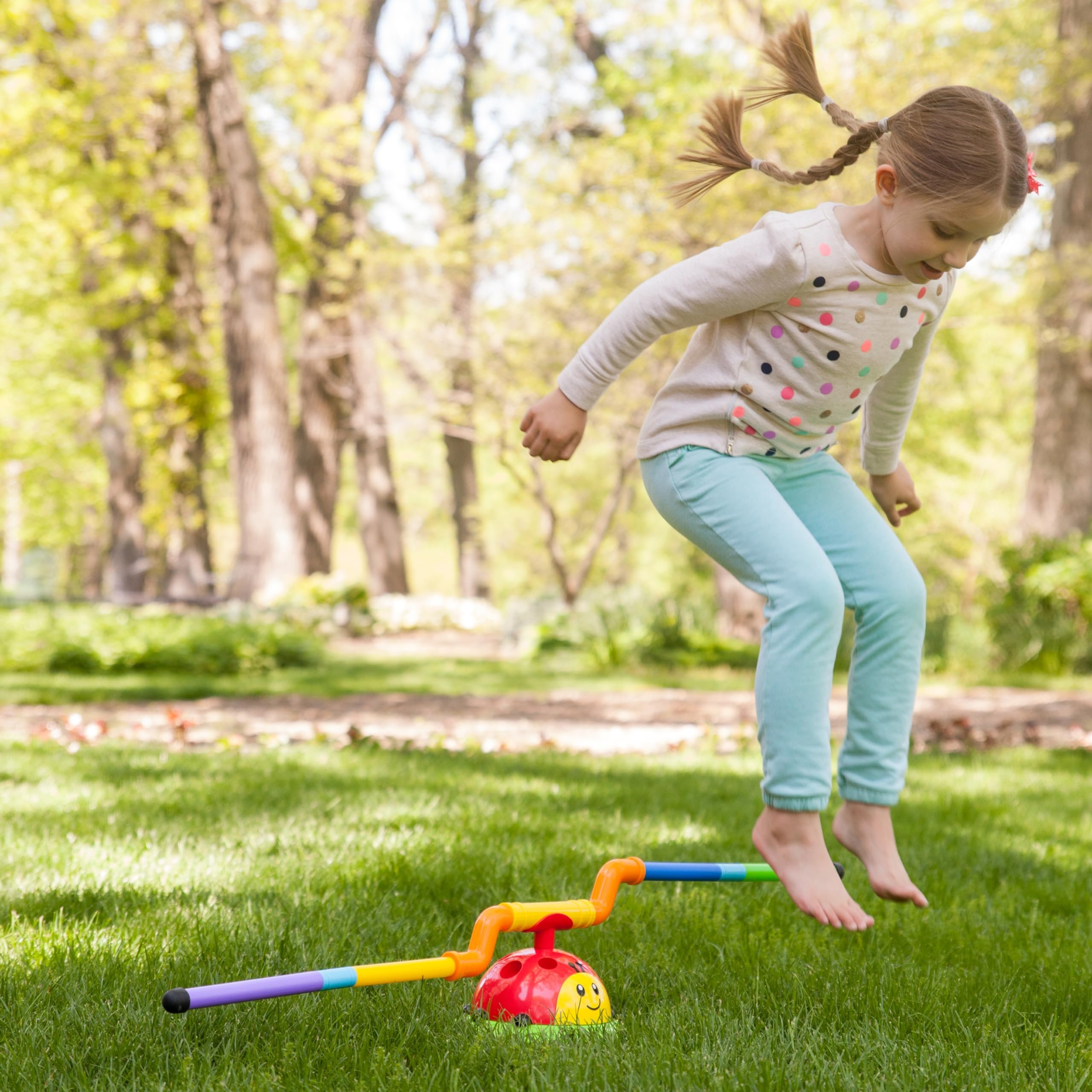 SPINNING POLE-HOPPING GAMEÂ that transforms into a spinning ring-toss game; endless active fun!