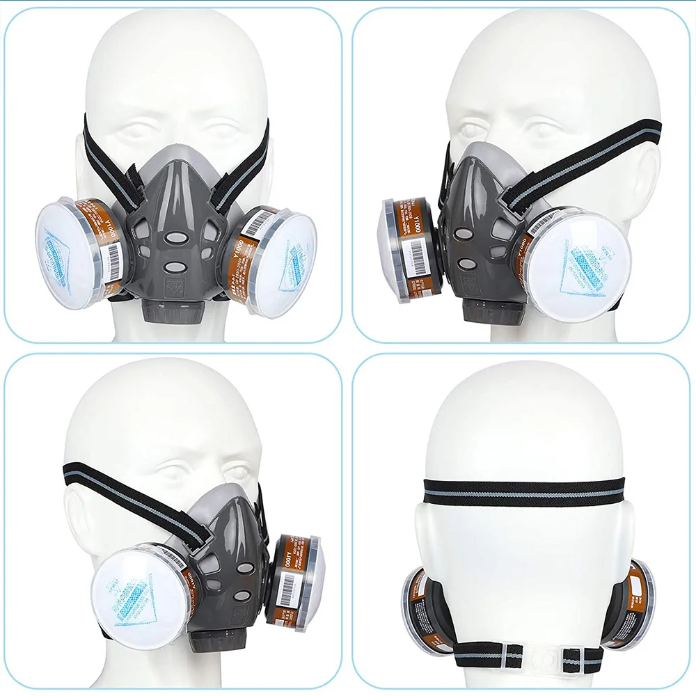 fumes in various environments. Featuring dual filters, this reusable respirator mask ensures optimal