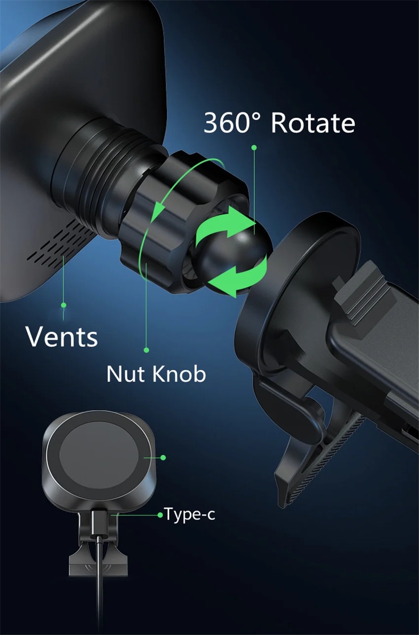 - Dual Functionality: Acts as both a phone holder and a wireless charger, providing convenience and efficiency.
