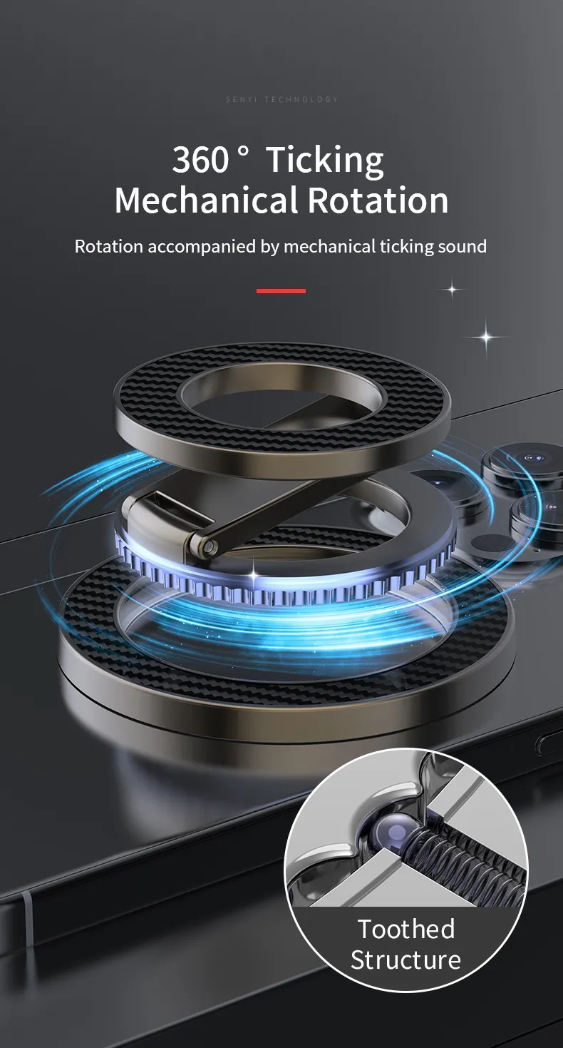 The double-sided magnetic ring ensures your phone stays securely in place, preventing slips and drops even on bumpy roads. With 360-degree rotation, you can adjust your device to any viewing angle, making navigation, video calls, or media streaming effortless and safe. The foldable design allows compact storage when not in use, keeping your car interior neat and tidy.