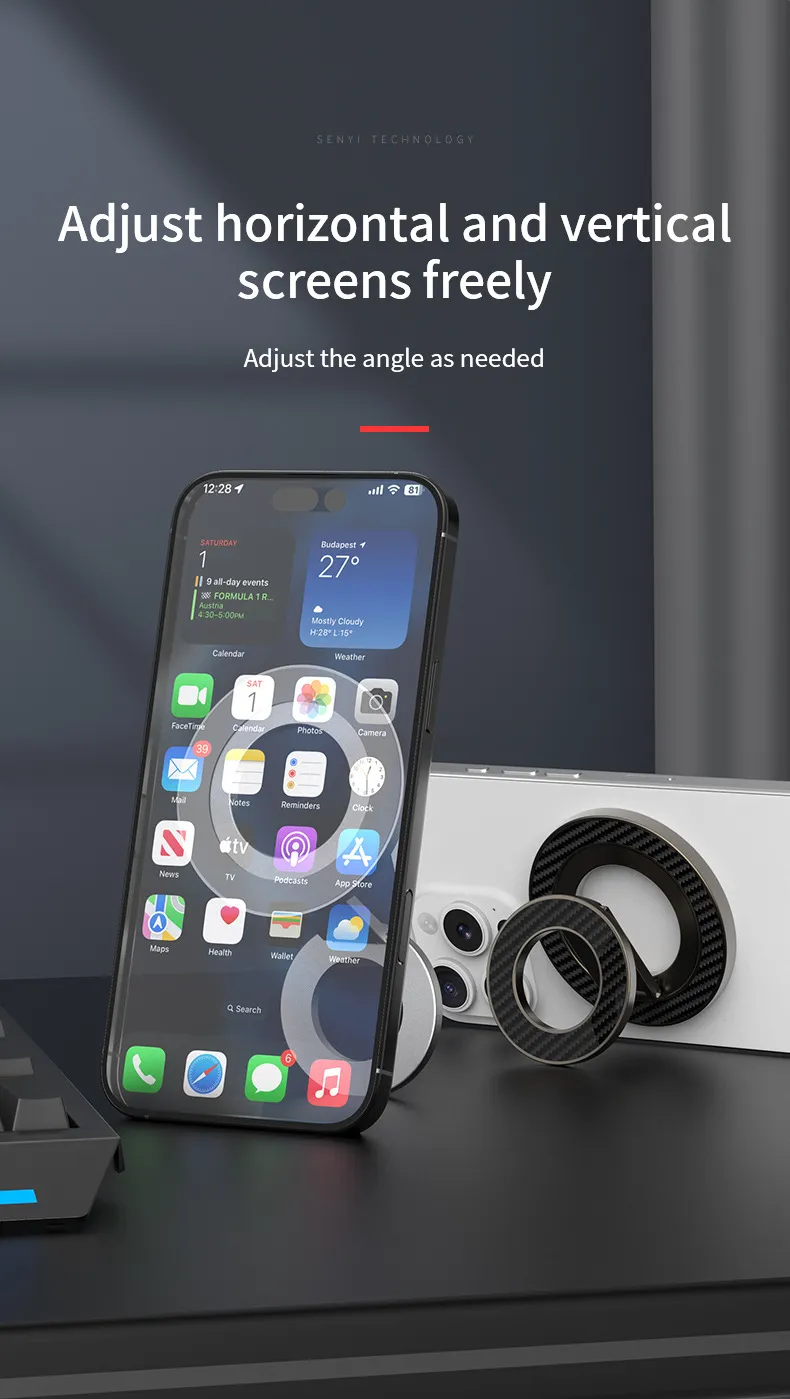 - 🧲 Double-sided magnetic fastening – secure and stable phone hold