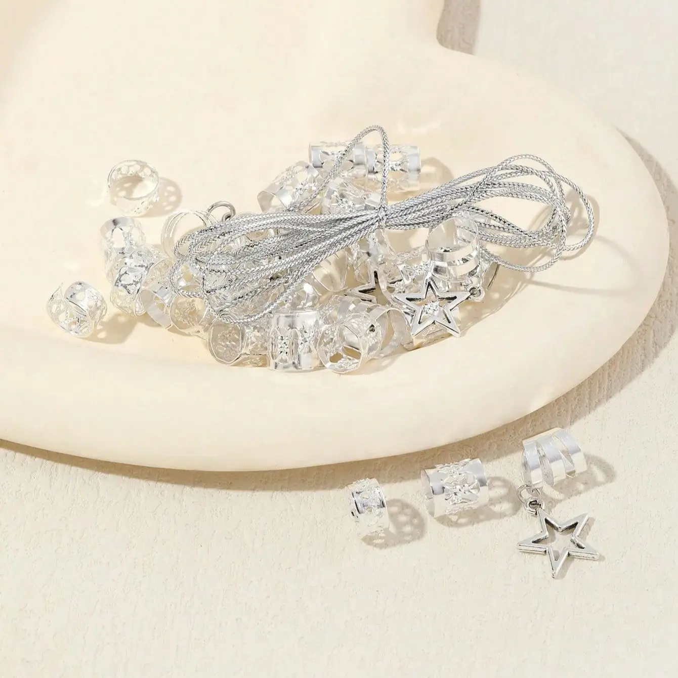 The 36pcs Star Hair Rings set is perfect for those who love to accessorize their hair and explore creative styles. With a range of star-shaped rings, cuffs, and beads, this set allows you to customize your look easily. Made from high-quality metal, these accessories are designed to withstand daily wear while adding a touch of style and shine to your hair. This set is ideal for people of all ages who want a fun, fashionable way to enhance their hair.