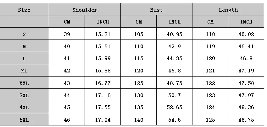 Size: S,M,L,XL,2XL,3XL,4XL,5XL