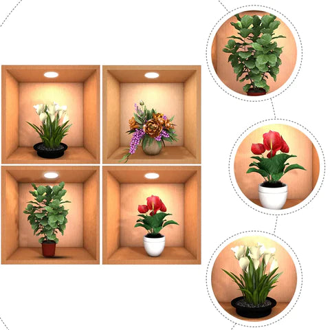 - Package Includes: 4 x 3D Vase Wall Stickers