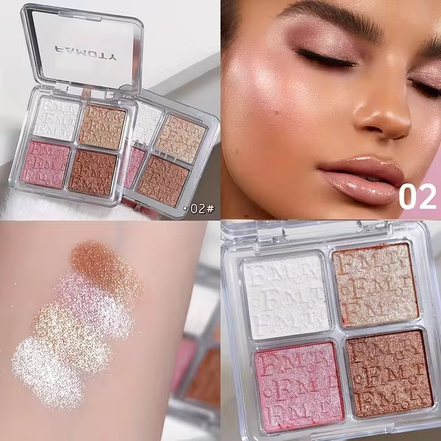 Enhance your makeup look with the 4 Color Face Highlighter Palette, your go-to for achieving a flawless, illuminated finish. Perfect for every occasion and all skin types.