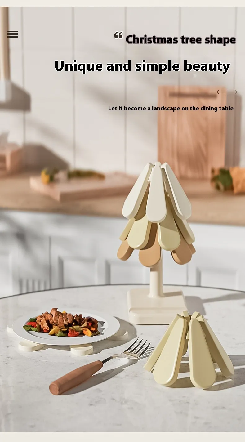 【Unique and Practical】 Perfect for any occasion, this tree-shaped trivet can double as a coaster and folds into a compact, Christmas tree-like form, adding a touch of elegance while conserving space.