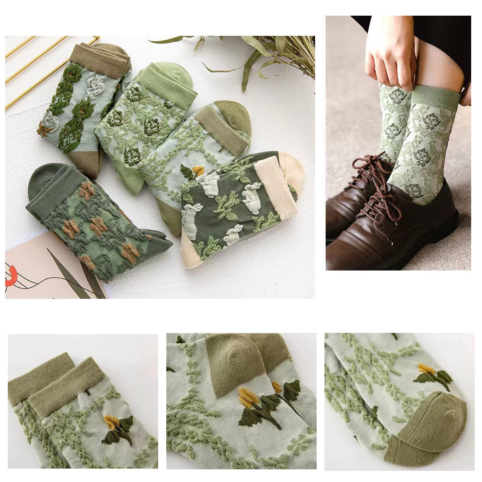 5 Pairs Womens Floral Cotton Socks