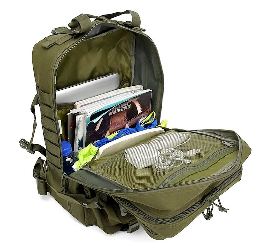 This tactical and gym backpack is a robust and edgy choice for any active individual. The durable construction is designed to withstand the