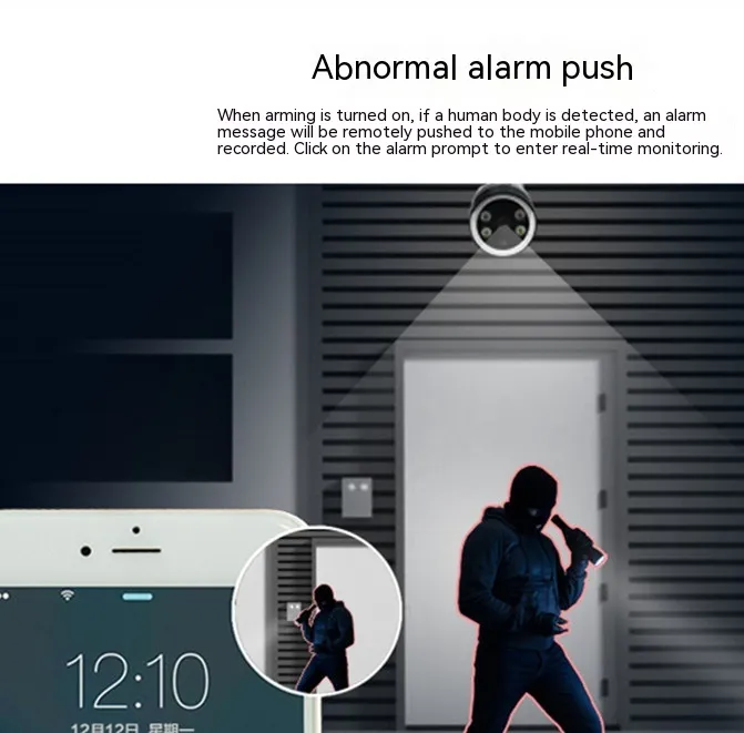 Additional features: night vision effect, alarm detection, and alarm notification